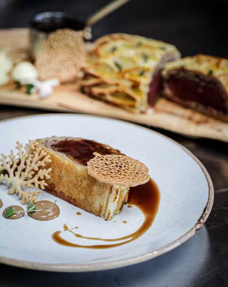 Tender wild venison loin is wrapped in a rich mushroom duxelles and encased in golden, buttery puff pastry. Every bite combines the deep, distinctive flavour of wild, sustainably sourced venison with the indulgence of a classic Christmas feast.
