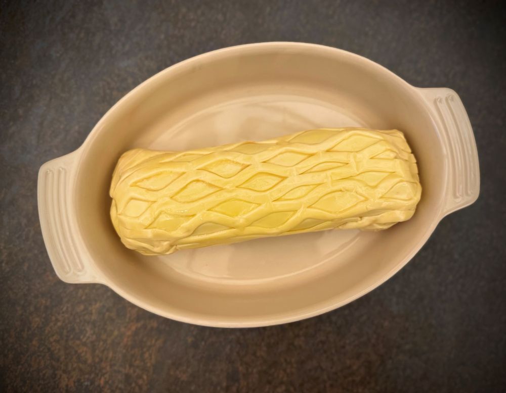 Our Wild Venison Wellington is delivered frozen and must be fully defrosted in the fridge for 12–24 hours before cooking. Once defrosted, preheat your oven to 200°C (180°C fan) / Gas Mark 6. Remove the Wellington from all packaging and place it on a lined baking tray, uncovered.